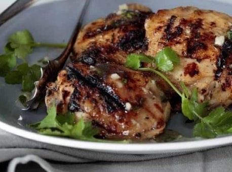 6Grill each chicken piece basting with left over marinade until golden brown and charred on both sides and cooked through. Approximately 12 minutes