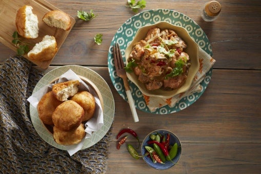 5Serve topped with fresh coriander and chillies, if desired, and vetkoek or bread rolls.