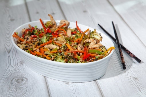 1In a large skillet or wok, heat the vegetable oil over medium-high heat.