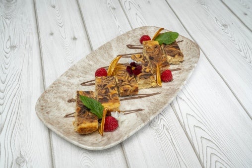 11. Preheat the oven to 160°C and line an 8x8-inch baking dish with parchment paper, leaving an overhang for easy removal.